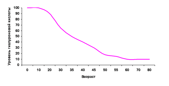 Человеческий организм самостоятельно вырабатывает гиалуроновую кислоту до 25 лет, поскольку в этот период происходит активный рост и окончательное формирование всех тканей и органов. Затем процесс выработки гиалуроновой кислоты замедляется в десятки раз.