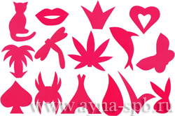 3. Трафарет для нанесения рисунка. Так как рисунок наносится до депиляции, без трафарета ровный контур получается редко. Хорошо иметь набор трафаретов из пластика - они многоразовые. Будете форму интимных стрижек дома менять самостоятельно.