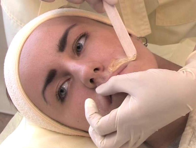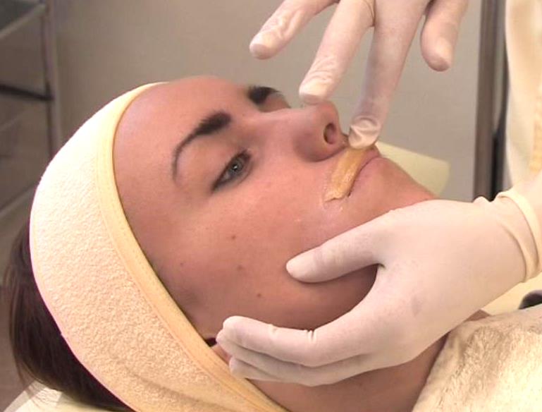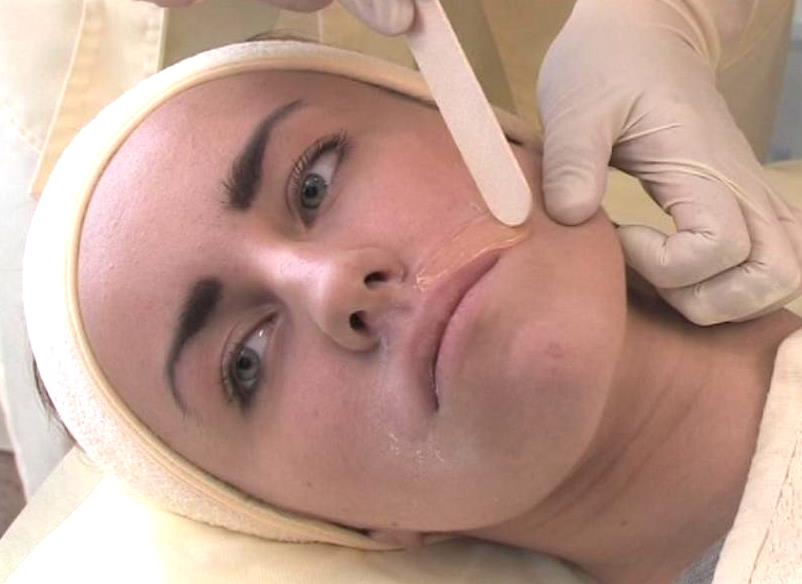 Снимают состав также против роста волос, резким движением, параллельно поверхности кожи.