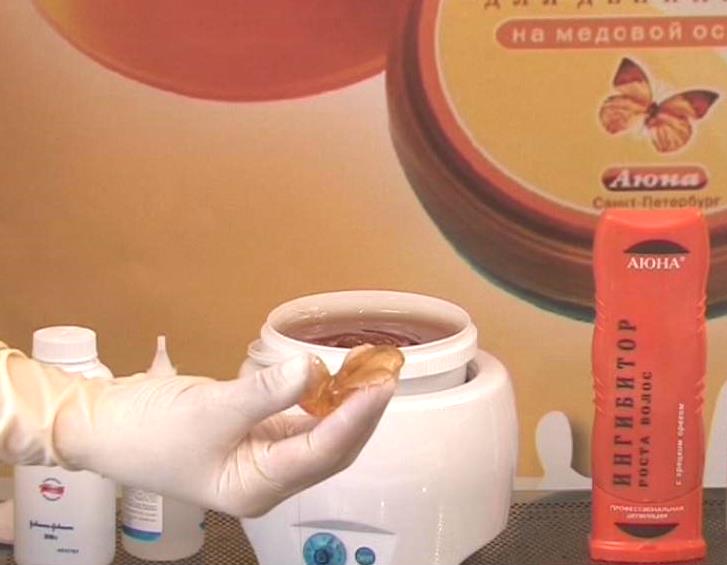 Сегодня медовую пасту производит фирма АЮНА: фитосмола для депиляции. Состав: мёд пчелиный, сок лимона, экстракт оболочек грецкого ореха, сосновая живица.
