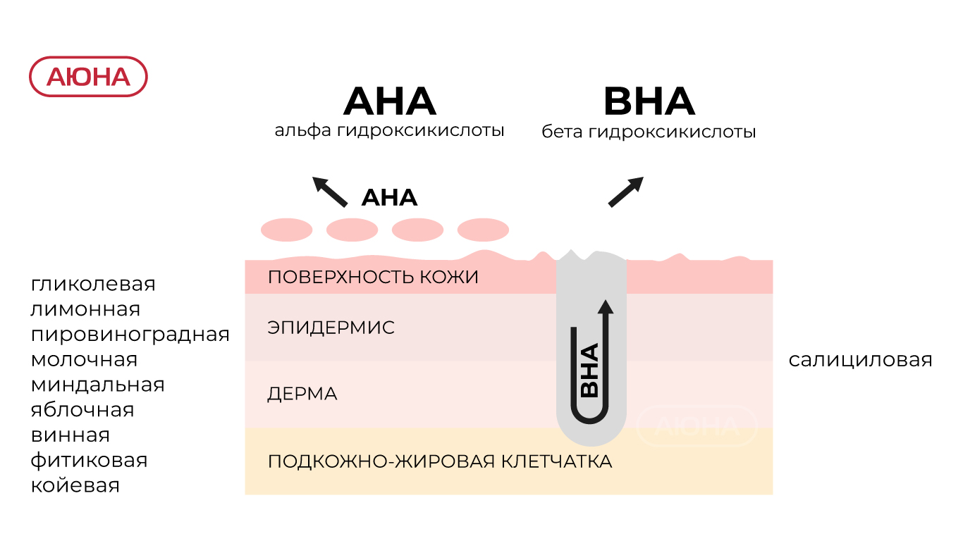 Прежде всего, AHA — водорастворимые соединения, в то время как BHA — жирорастворимы.