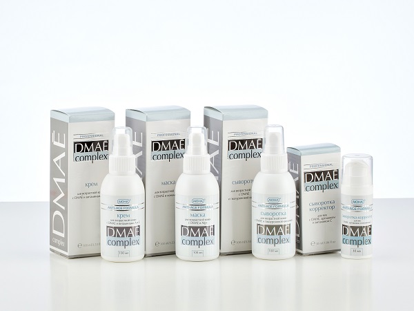 - ДМАЕ работает более эффективно при применении этого веществ в комплексах, в первую очередь с гиалуроновой кислотой.
