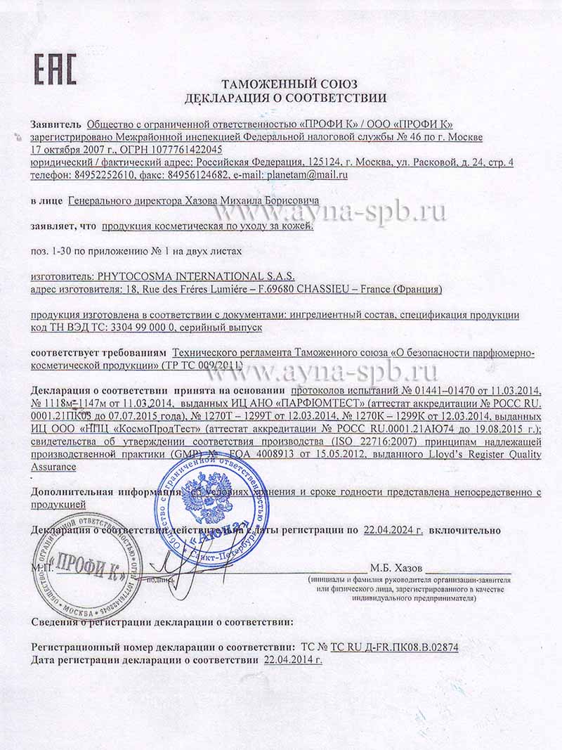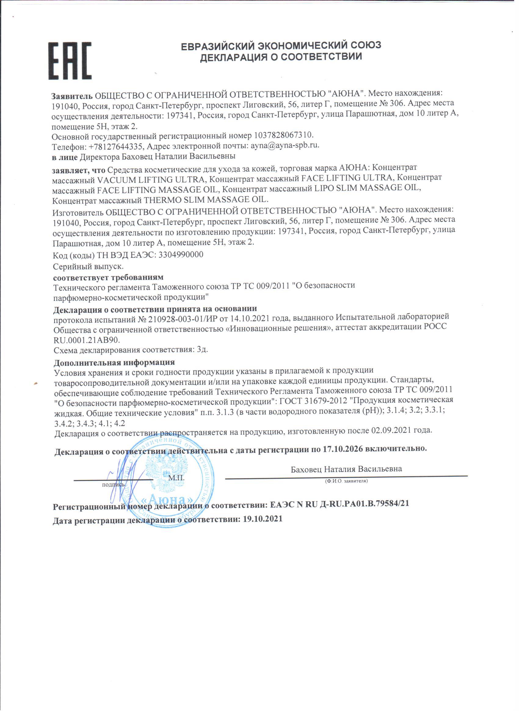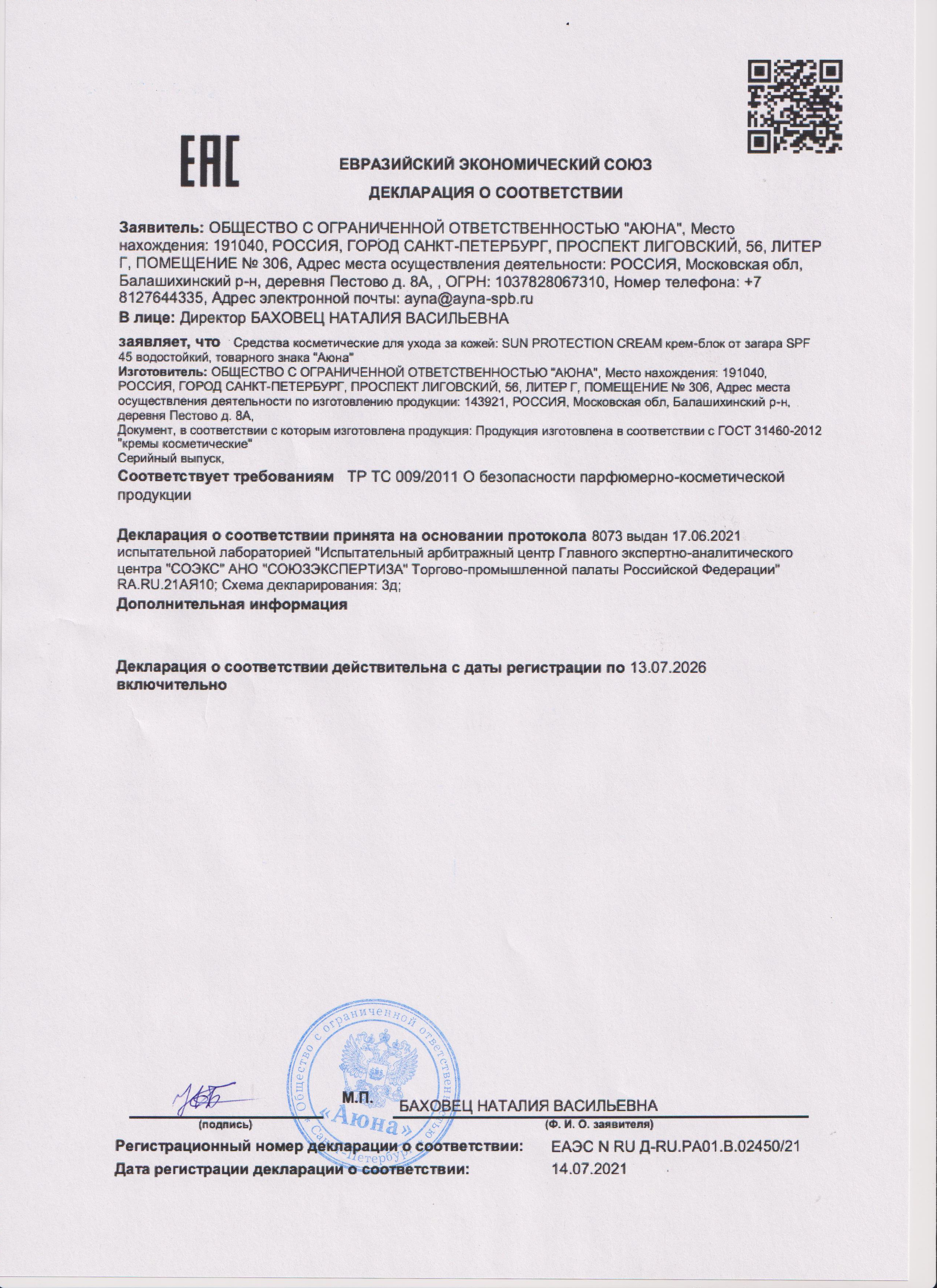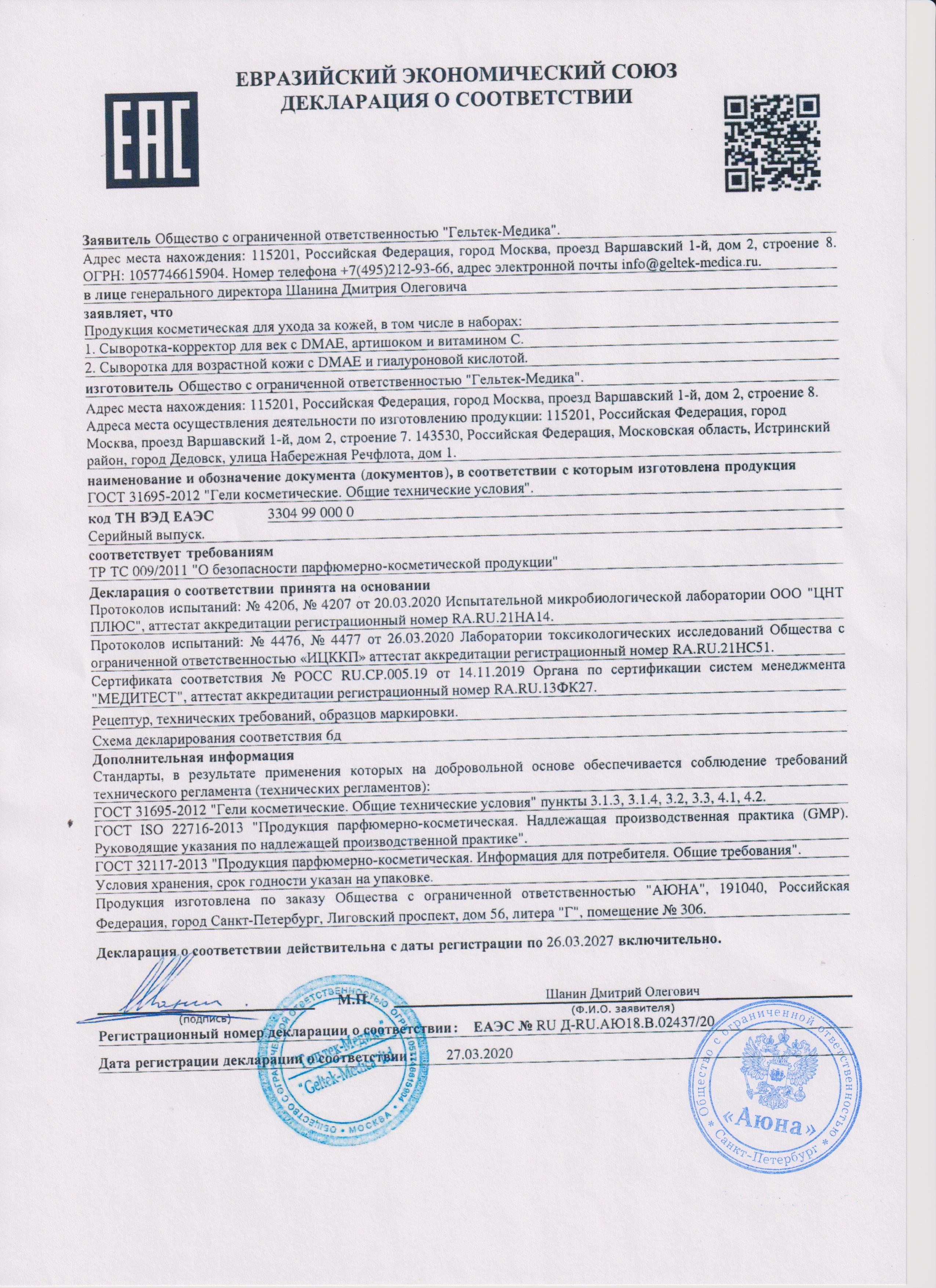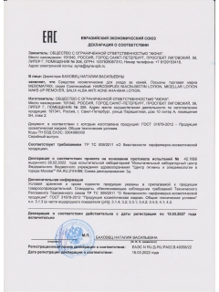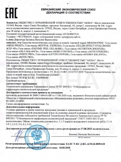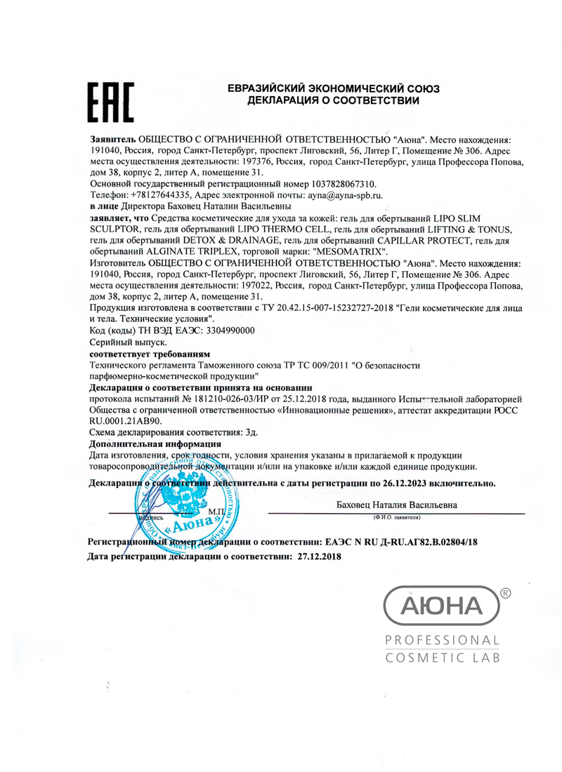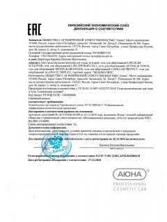 Сертификаты и декларации соответствия на продукцию компании АЮНА