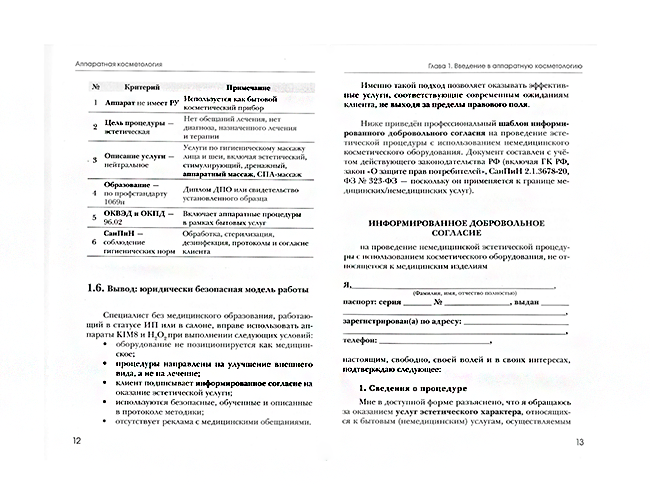 Особое внимание уделено юридическим аспектам применения методик в эстетической косметологии. Материал изложен доступным и одновременно научно обоснованным языком. Подробно рассмотрены показания и противопоказания, схемы процедур, профилактика осложнений и сочетание техник в рамках курса. Издание предназначено для косметологов, эстетистов, медицинских сестёр по косметологии, преподавателей и студентов курсов косметологии, специалистов, начинающих работу с аппаратами, владельцев кабинетов и учебных центров.