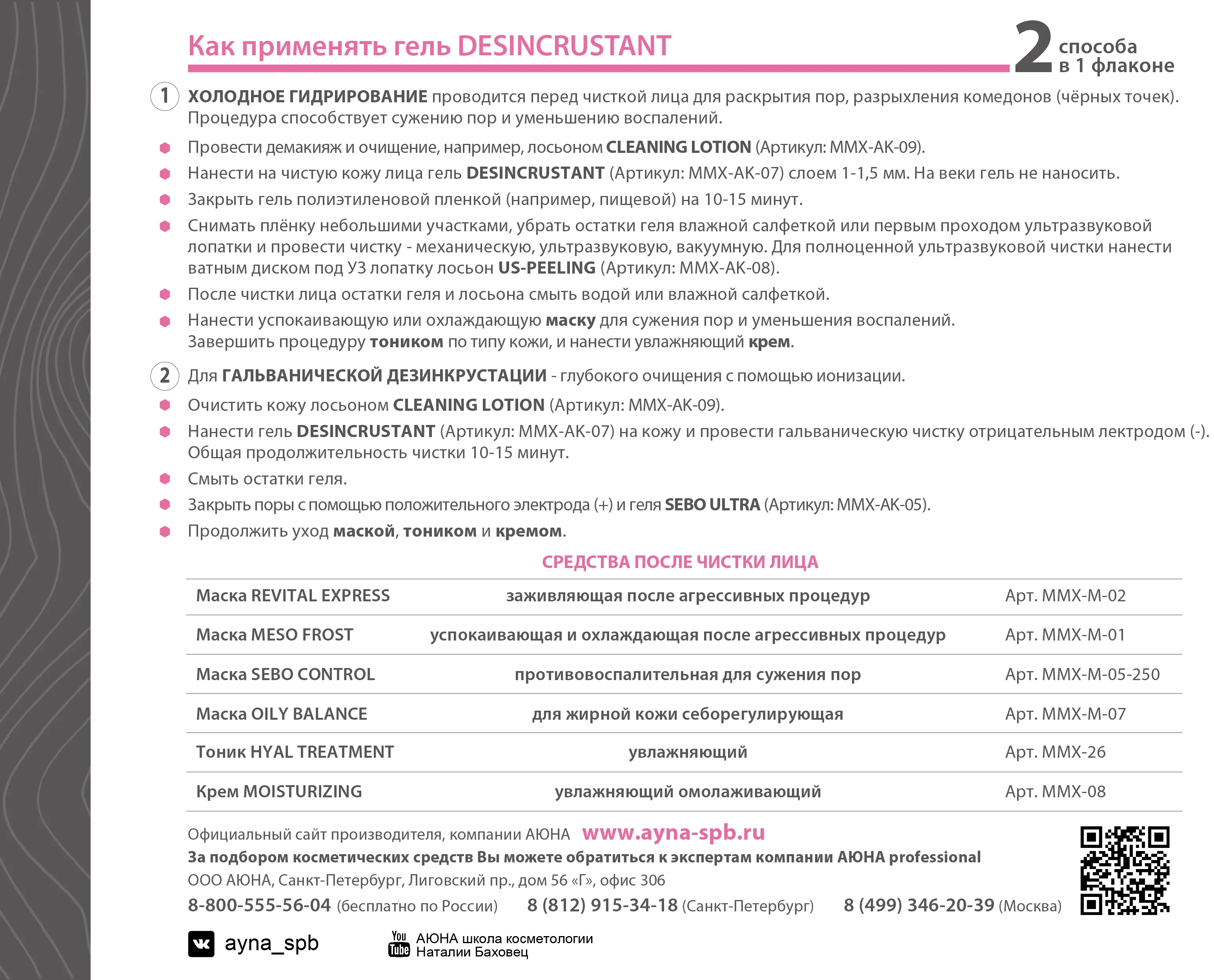 DESINCRUSTANT, гель для дезинкрустации, холодного гидрирования, ультразвуковой чистки лица