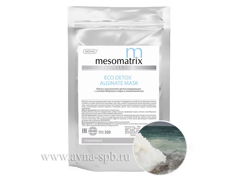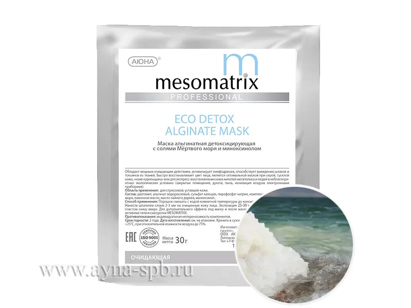 Альгинатная маска MESOMATRIX детоксицирующая с солями Мёртвого моря и миоксинолом/ ECO DETOX ALGINATE MASK