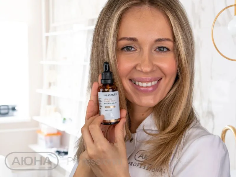 Нанесение пилинга – FERULIC SHINE SKIN, 3 мл на сухую кожу, экспозиция 5–10 минут.