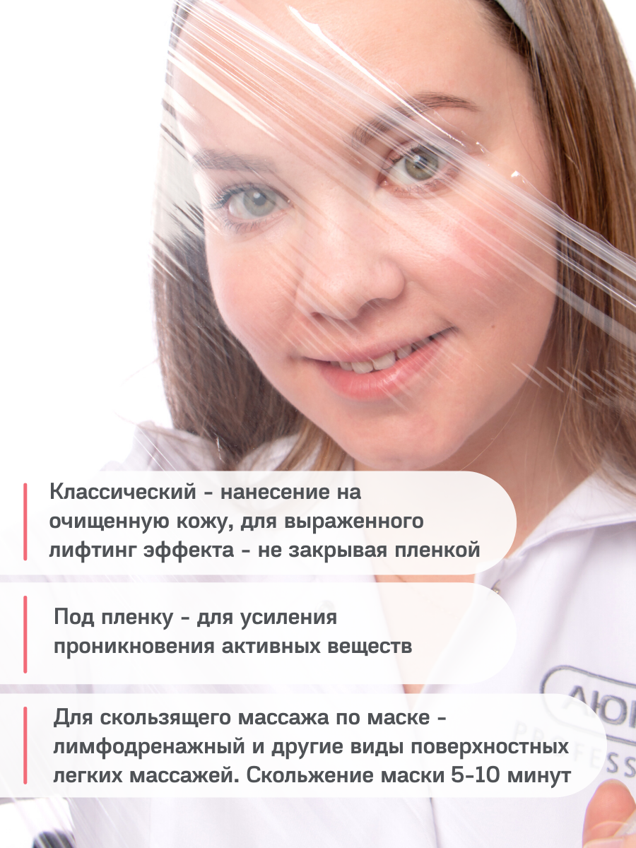 - для скользящего массажа по маске - лимфодренажный и другие виды поверхностных легких массажей. Скольжение маски 5-10 минут.