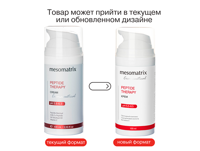 Крем PEPTIDE THERAPY не содержит SPF-фильтры в своем составе, поэтому в дневное время обязательно использовать солнцезащитный крем поверх PEPTIDE THERAPY. Рекомендуемые средства MESOMATRIX: SUN PROTECTION SPF 30–100.