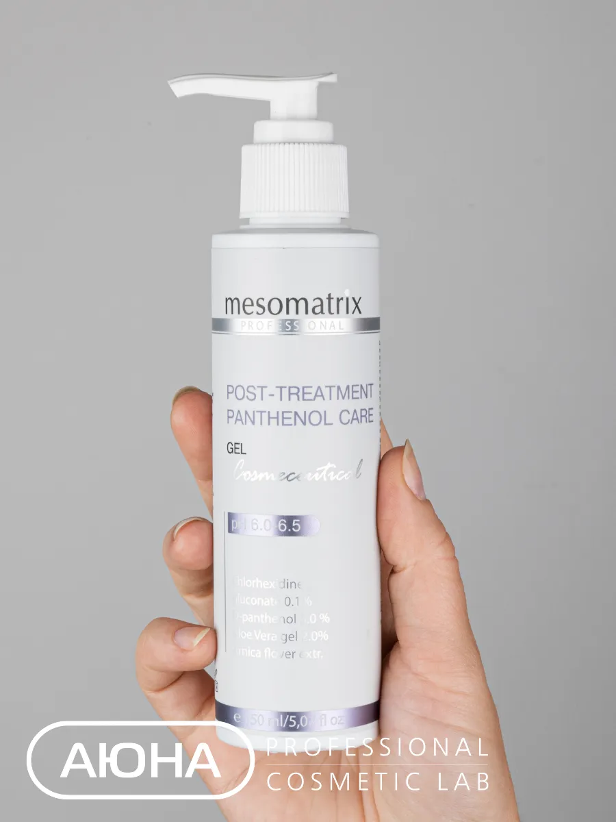 Успокаивающий и регенерирующий постпроцедурный гель с хлоргексидином 0.1%, D-пантенолом 3%, аллантоином. После агрессивных косметических процедур — после мезотерапии, пилингов, дермапена, мезороллера, ультразвуковой и механической чистки лица, фракционного RF лифтинга, эпиляции, перманентного макияжа и др.