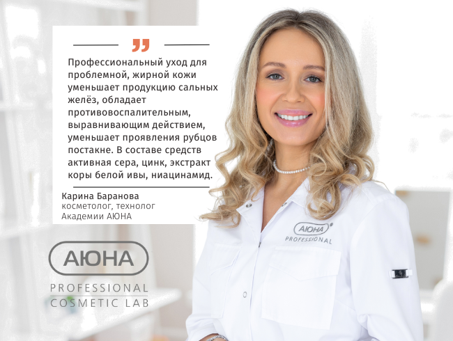 В набор входят средства с биоорганической серой, цинком, экстрактом коры белой ивы. Они уменьшают продукцию сальных желёз, способствуют восстановлению кислотности и состава кожного сала за счёт активной серы, обладают противовоспалительным действием. Способствуют смягчению и выравниванию рубцов пост акне. Можно применять не только на лице, но и на спине, груди, на коже головы для снижения сальности, лечения перхоти, себореи, акне.