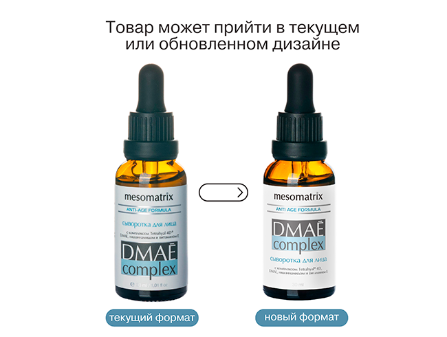 В сыворотке для лица DMAE Complex от MESOMATRIX концентрация DMAE (диметиламиноэтанола) составляет 1%.