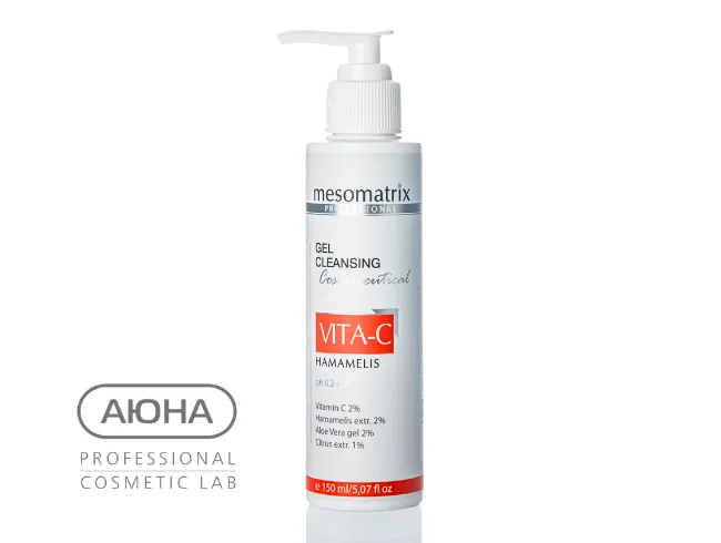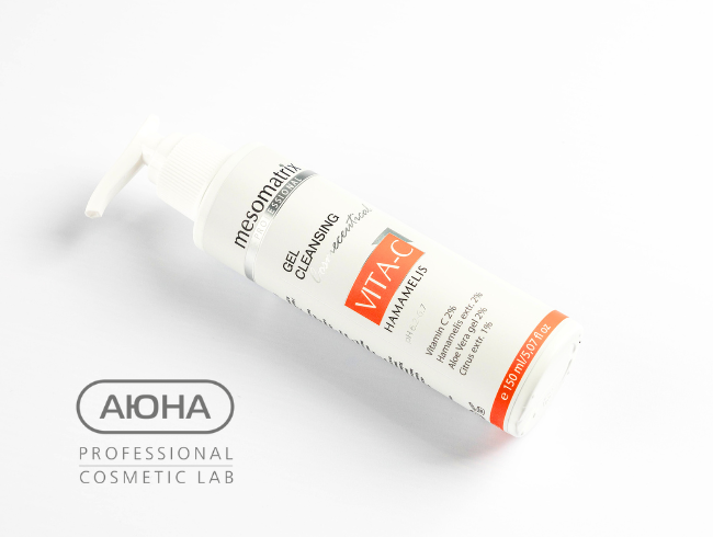 В очищающем геле VITA-C HAMAMELIS от MESOMATRIX используются мягкие ПАВы (поверхностно-активные вещества) и мицеллярная формула. В описании прямо указано, что гель: